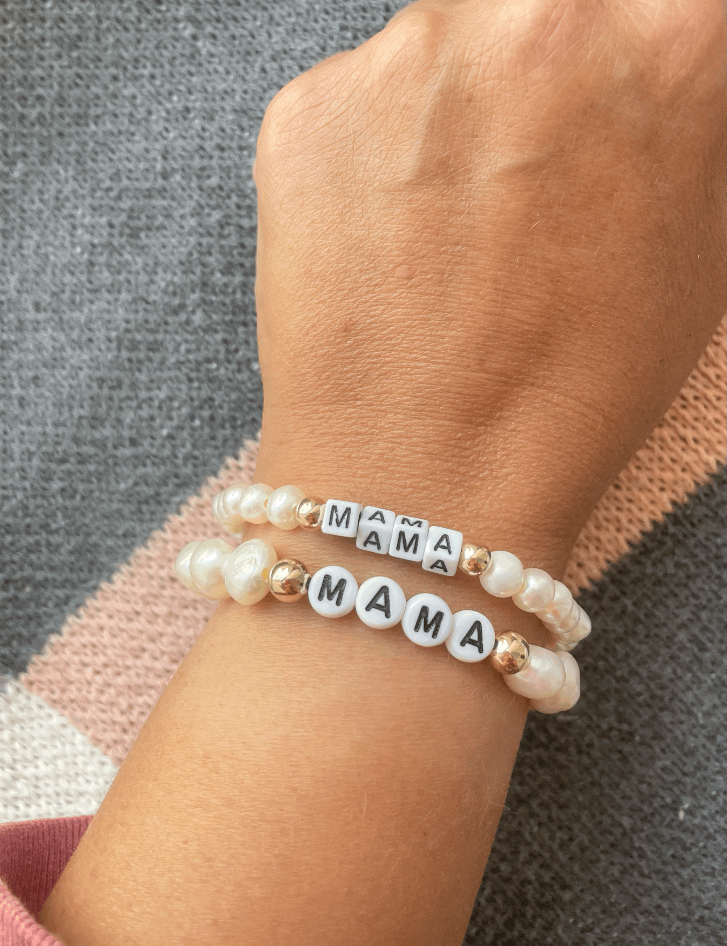 Pearl mama bracelet made with real freshwater pearls and gold filled accents.